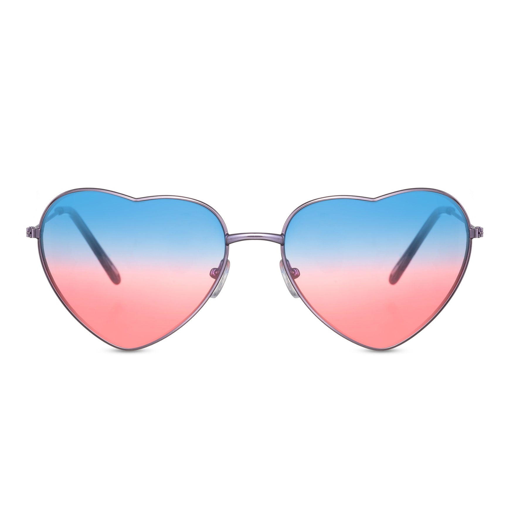 Ge dina ögon en touch av elegans med våra hjärtformade solglasögon i metall. Tillverkade av högkvalitativt metall för en stilfull look. De lila glasen ger 100% UV-skydd, kategori 1, och är tillverkade av halvtransparent polykarbonat för klarhet och hållbarhet. Med en bredd på 14 cm och en höjd på 5 cm är de perfekta för att skydda dina ögon med stil.