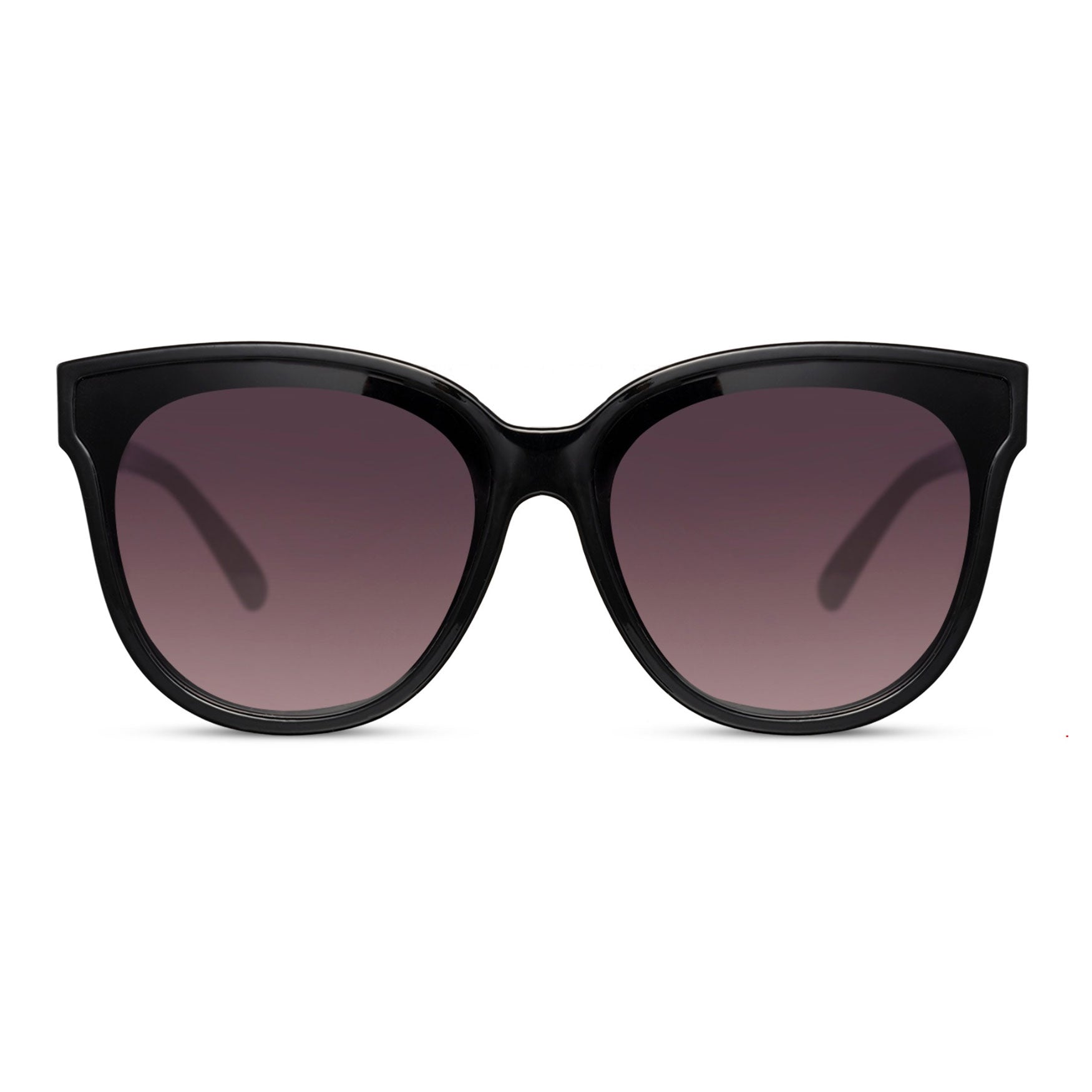 Dessa oversized cateye solglasögon i svart med svarta glas är en tidlös accessoar för alla tillfällen. Tillverkade av en kombination av metall och polykarbonat, erbjuder de både hållbarhet och stil. Med 100% UV-skydd, kategori 3, skyddar de dina ögon mot skadliga solstrålar. Med en bredd på 14,5 cm och en höjd på 5,8 cm ger de en bekväm passform och ett brett synfält för alla dagliga äventyr.