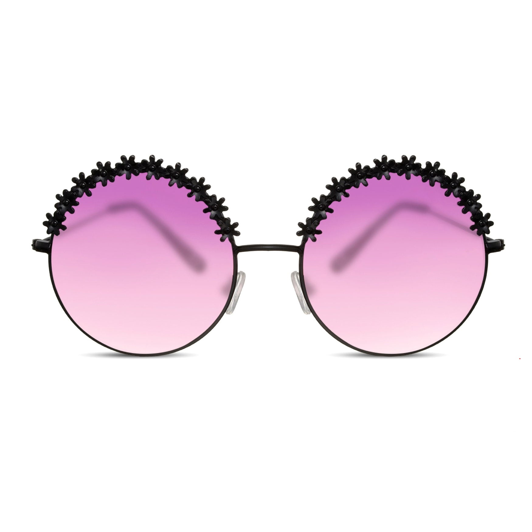 Dessa unika solglasögon har en rund design tillverkad av svart acetat, kombinerad med svarta glas för en stilren och sofistikerad look. Acetat är ett utmärkt material för solglasögon på grund av dess hållbarhet, lätthet och förmåga att producera olika färger och mönster. Glasen är tillverkade av polariserat 1,1 mm TAC-material, känt för sin höga optiska kvalitet, lätta konstruktion och motståndskraft mot repor. Passande för både män och kvinnor, dessa solglasögon ger 100% UV-skydd (kategori 3). Med en bredd på 13,5 cm och en höjd på 5,1 cm erbjuder de en bekväm passform för hel dagsslitage.