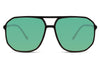 Dessa oversized solglasögon i svart ram med grön/orange glas är den perfekta tillbehöret för kvinnor. Tillverkade av polykarbonat är de både hållbara och lätta. Med gradienta glas ger de en elegant touch och 100% UV-skydd, kategori 2. Med en bredd på 14,2 cm och en höjd på 5,3 cm passar de bekvämt och ger ett brett synfält för att skydda dina ögon med stil.